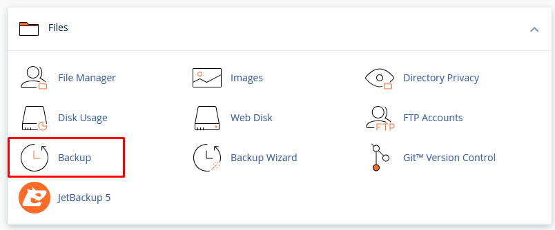 2. In the Files section, click on the Backups icon.