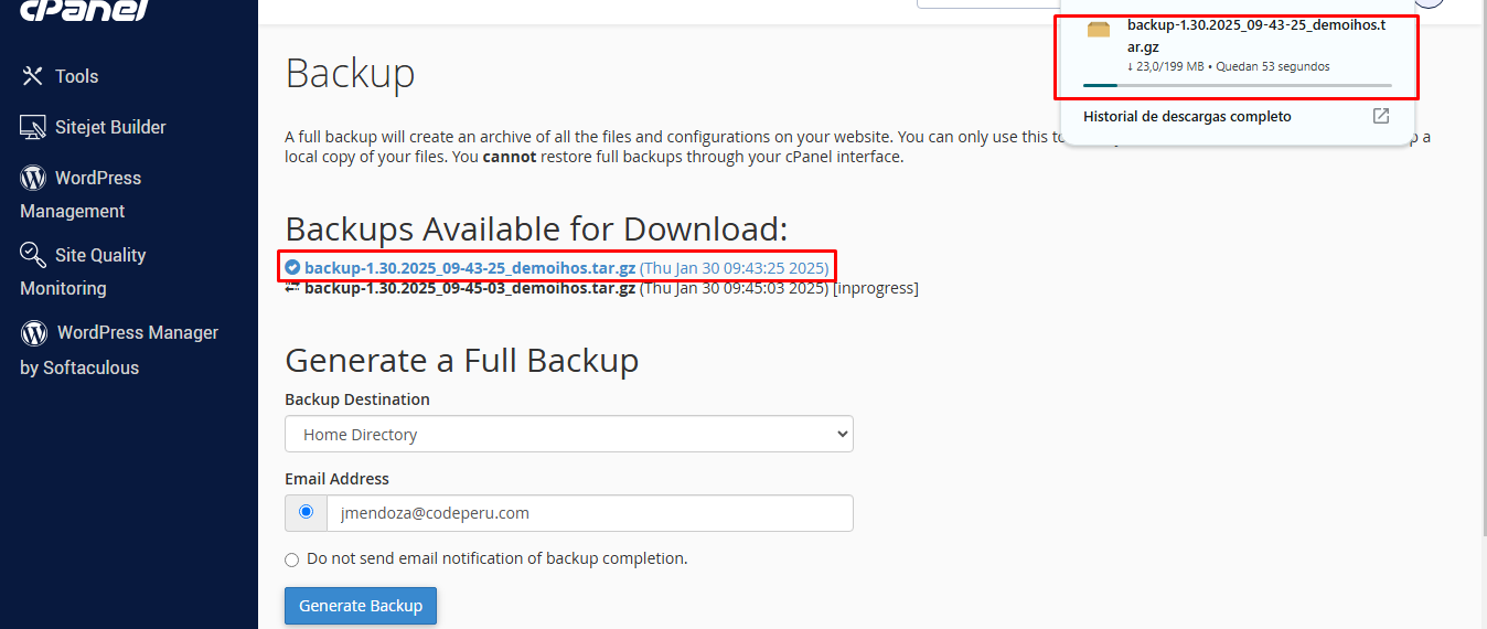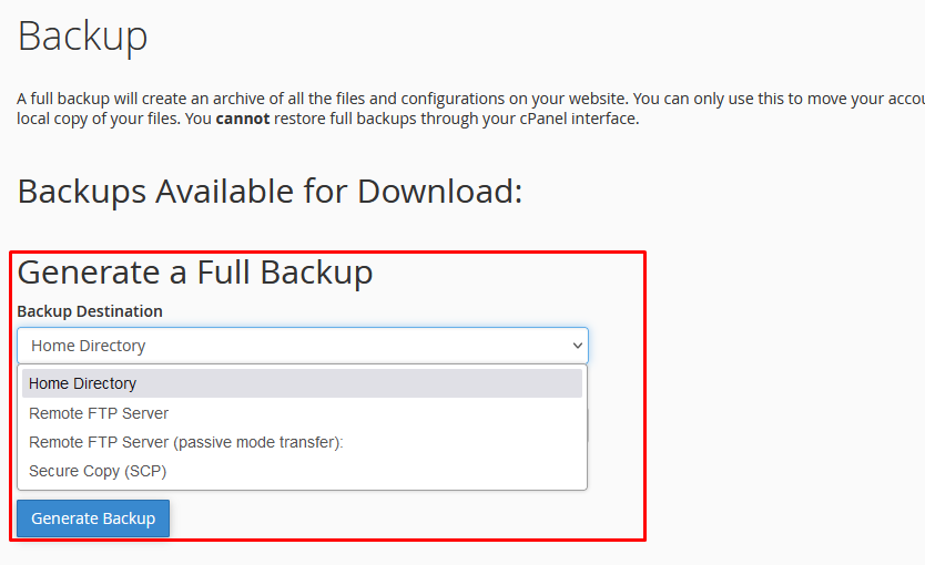 How to generate a full backup in cPanel?